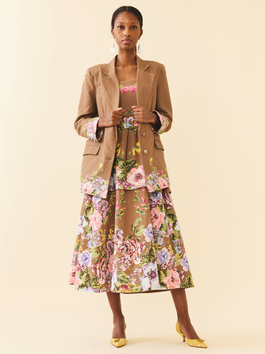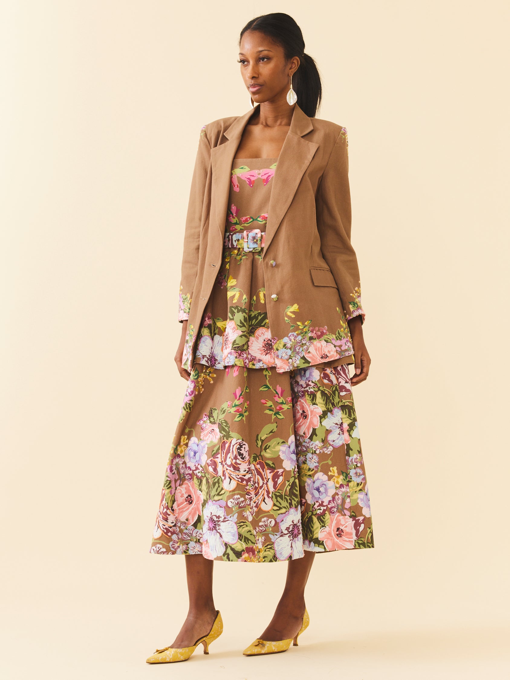 Meet Sloan. A blazer inspired by that one you stole from your ex. Accented shoulder pads, a boxy, hyper-relaxed fit. The perfect finish to a chic tailored pant moment or thrown over a party dress. Bold Victorian florals printed on the blazer with hand embroidery over top for the final touch.