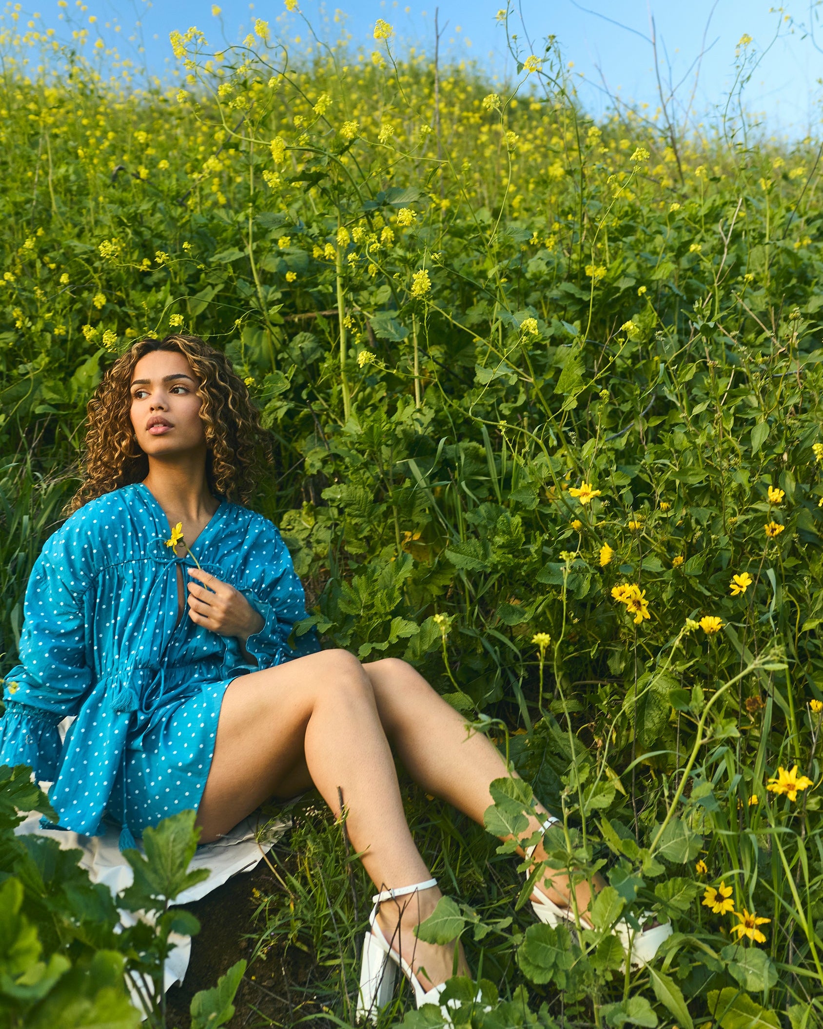 A bright polka dot print brings a little happiness to it all. Light, easy, endlessly wearable, made for picnics, brunch, and everything in between.