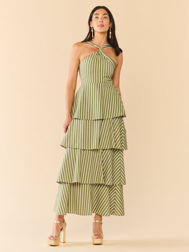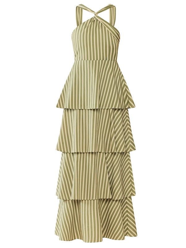 The Emma, a maxi dress crafted in cotton linen with cross-tie options, offers the option to be worn as a halter neck or one shoulder. Twist both ties for a one-shoulder look or wrap around the neck for a romantic halter neck finished with a tied bow at the back. Refined fit from previous collections with addition of a smocked back for coverage.