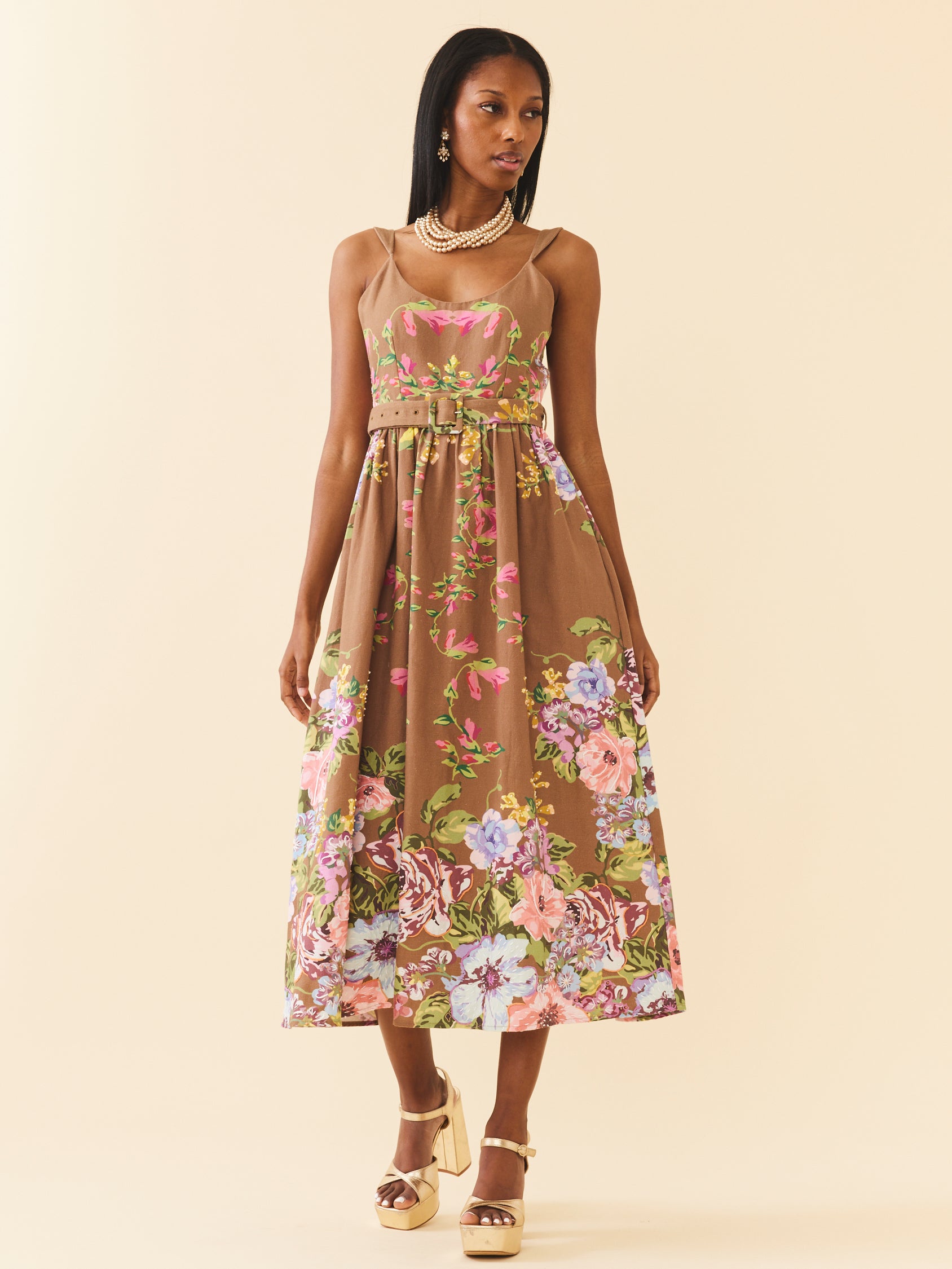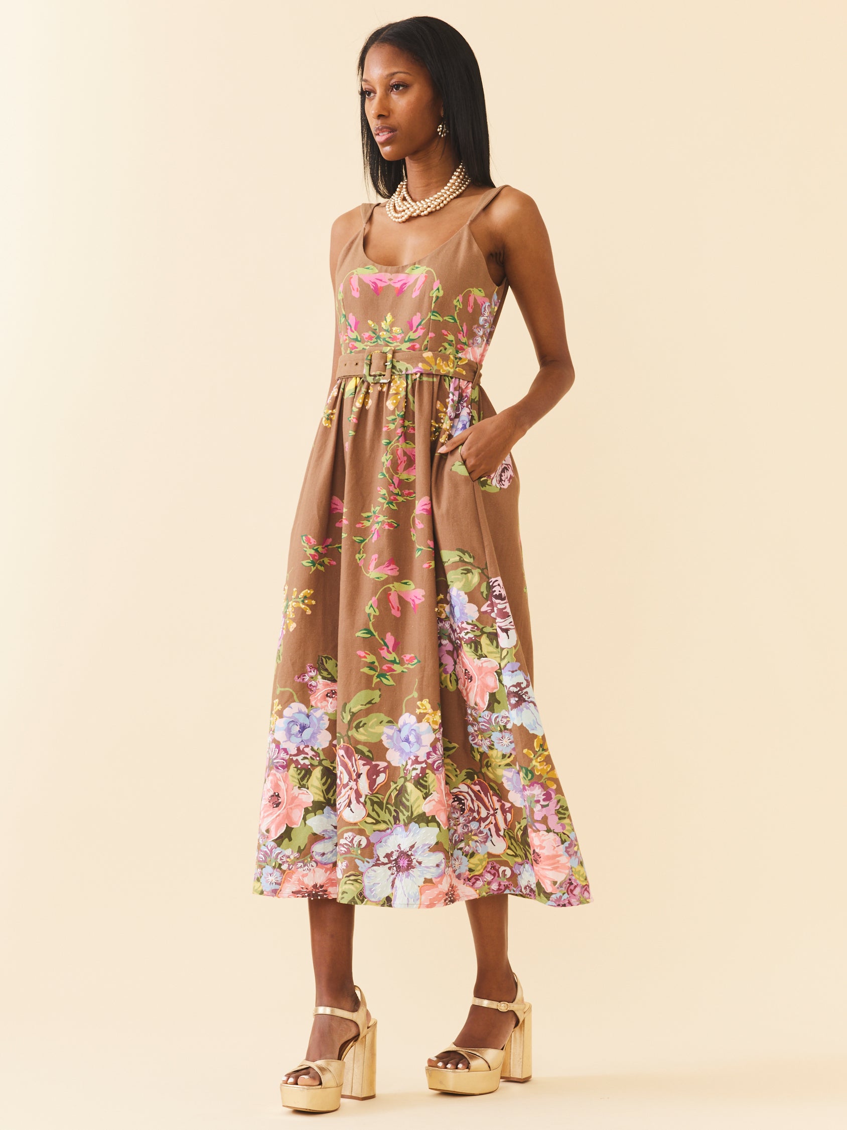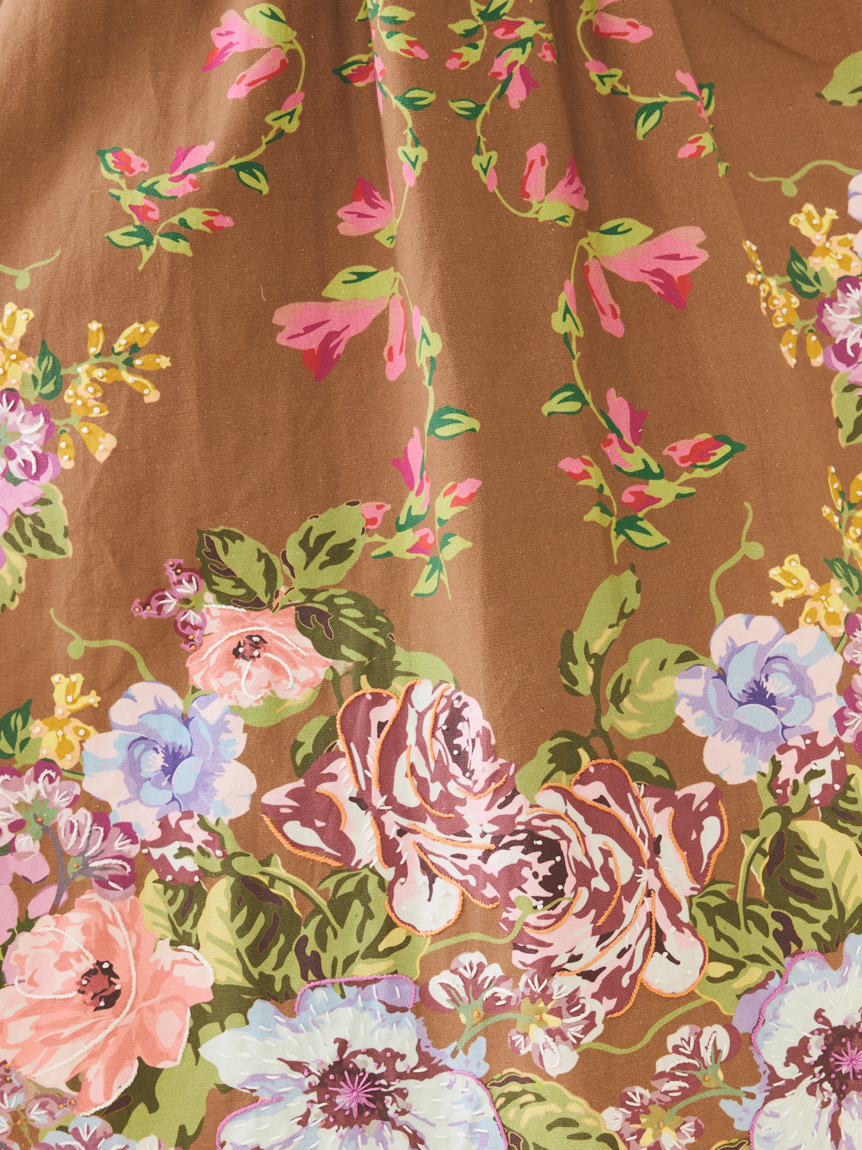 Introducing Katherine, a midi-length dress adorned in a bold Victorian floral print with hand embroidery over top. Bringing the drama, this dress is finished with a voluminous a-line skirt.